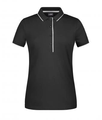 Knitted polo collar and sleeve cuffs with contrasting stripe