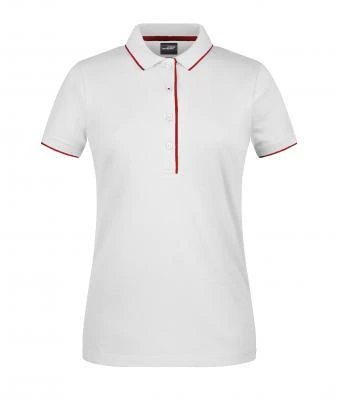 Knitted polo collar and sleeve cuffs with contrasting stripe