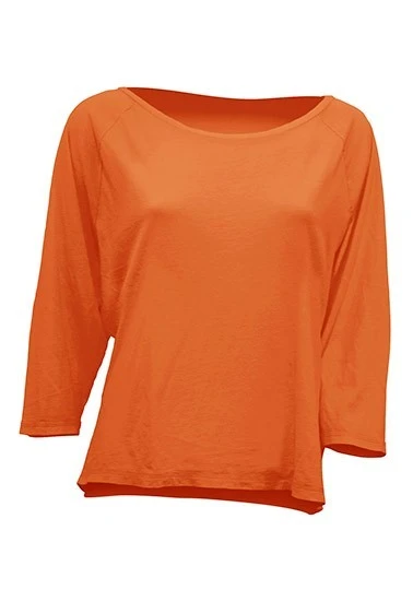 Raglan 3/4 sleeve. Wide round neck. Single jersey.