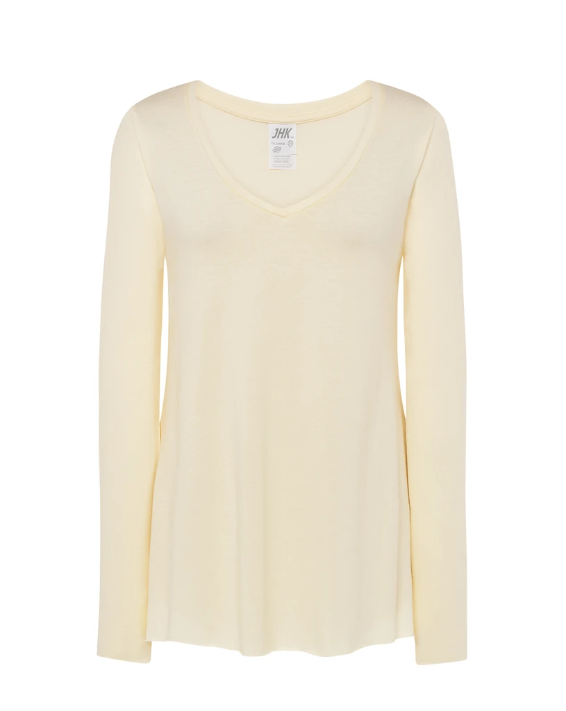 Raglan 3/4 sleeve. Sleeves and bottom unfinished.