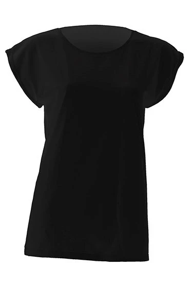 Ladies short sleeve t-shirt. Single jersey. Sleeve hems. Wide round neck.