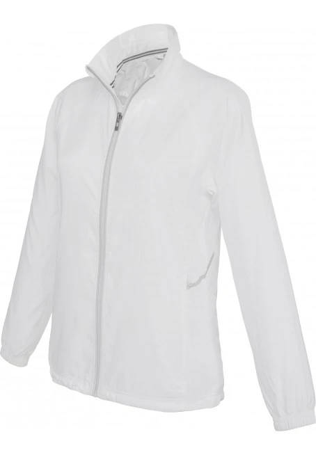 100% Polyester diamond. Quick drying fabric. Fully mesh lined. Zipped front with reflective piping. 2 front zipped pockets. 1 inner pocket. Elasticated cuffs. Adjustable drawcord at hem with toggles. Reflective trims at sides. Zip access for decoration.