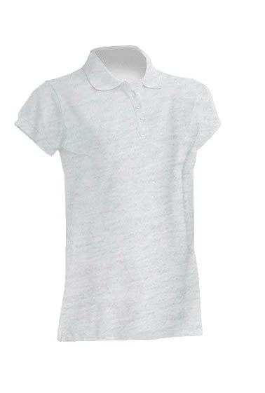 Ladies short sleeve fitted polo shirt. Body fitted. Piqué fabric. Three buttons placket. 1x1 Rib collar and cuffs. Side slits. Grey Melange: 85% cotton / 15% polyester.