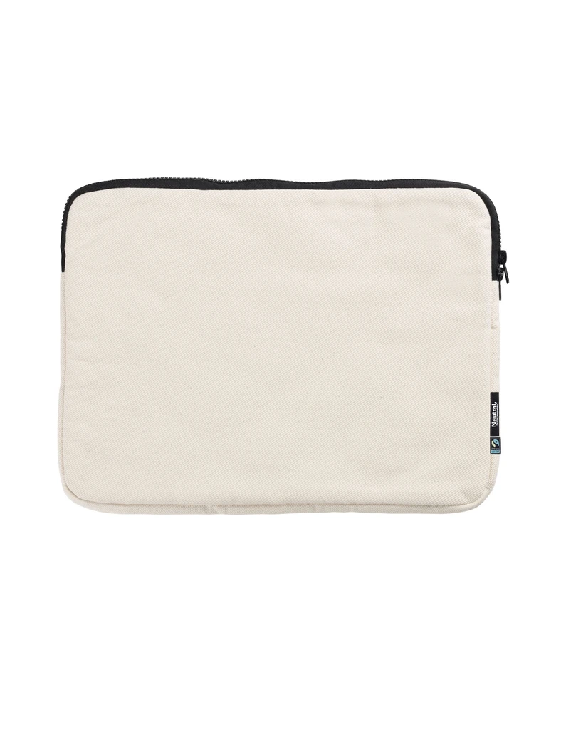 Material: 100% Organic Fairtrade Cotton, twill weave; Weight: 210gsm; Heavy Twill Weave. For 15” inches. Size: 37 x 27 cm. Twoway YKK-zipper. Inside quilted padding. Neutral® & Fairtrade flaglabels at side; Certificates: OEKO-TEX® STANDARD 100, 100% CERTIFIED ORGANIC COTTON, FAIR WEAR, EU ECOLABEL, SA8000, NEUTRAL® RESPONSIBILITY