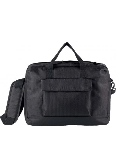 Laptop bag in polyester with bottom in contrasting 600D polyester. Padded compartment to fit up to 15-inch laptops and padded zipped pocket to insert a tablet. 2 inner pockets, 1 zipped pocket at the top of the bag to fit mobile phone, 1 front pocket with contrasting flap and press studs. Loop at the back to fit bag on trolley, removable shoulder strap.