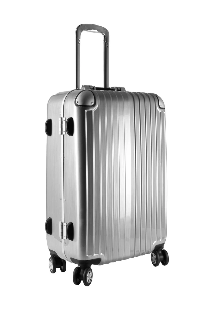 Large capacity trolley case in polycarbonate and aluminium. 4 double wheels, secure fastening with TSA lock, key provided.
