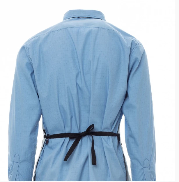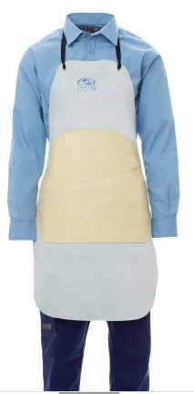 Reinforced cowhide split leather apron; Size: 60 x 90 cm; Nappa leather reinforcement; Features: soft, strong, resistant; Strengths: protection, repels liquids; Areas of application: heavy-duty handling, suitable for contact with hot, deburred material, handling in the presence of oil, grease, liquids