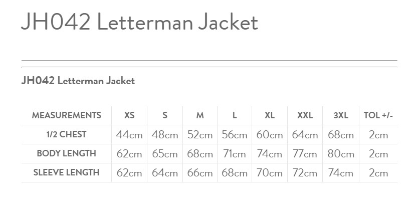 | Size | XS, S, M, L, XL, 2XL, 3XL |