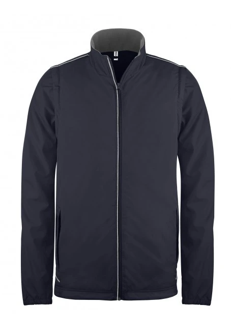 100% water repellent polyester. Polyester tricot body lining. 2 zipped pockets. 1 inside zipped pocket. Reflective piping. Inner zips for decoration access (left side and bottom of the garment).