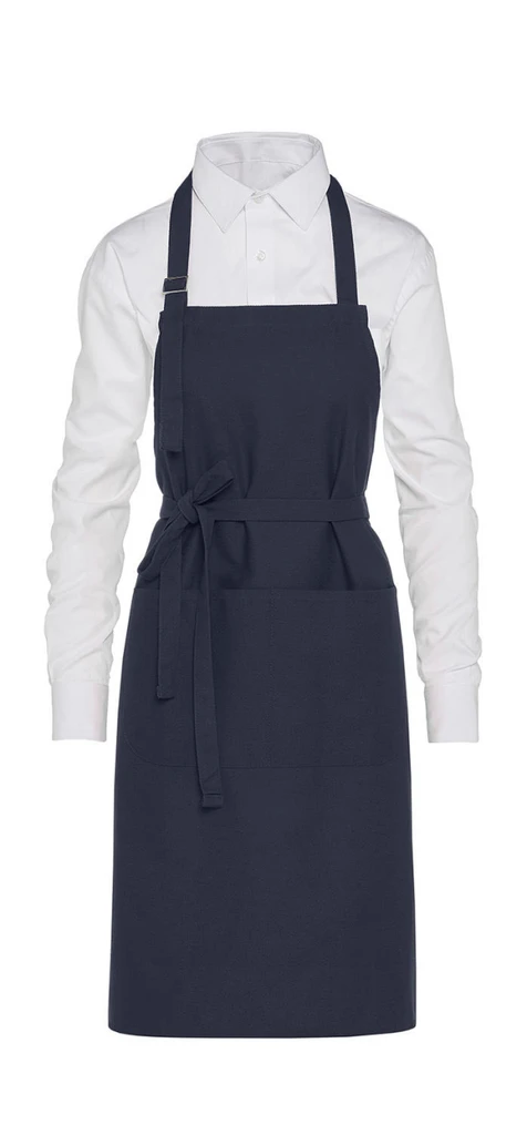 Looking for a functional heavyweight 100% COTTON bib apron washable at 60°C ? Then, this is the style for you. Practical, smart and comfortable thanks to the easy-to-adjust metal buckle, available in 9 on-trend colours, it will look Perfect in any environment.