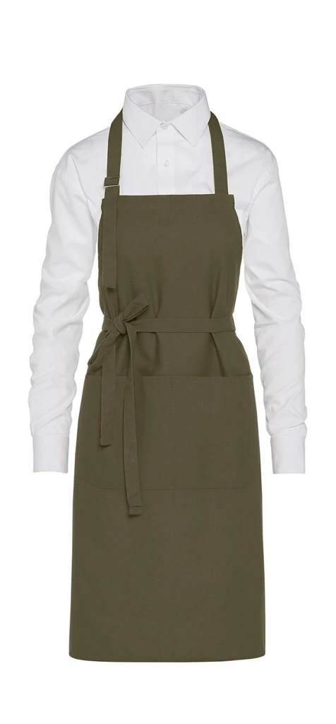 Looking for a functional heavyweight 100% COTTON bib apron washable at 60°C ? Then, this is the style for you. Practical, smart and comfortable thanks to the easy-to-adjust metal buckle, available in 9 on-trend colours, it will look Perfect in any environment.