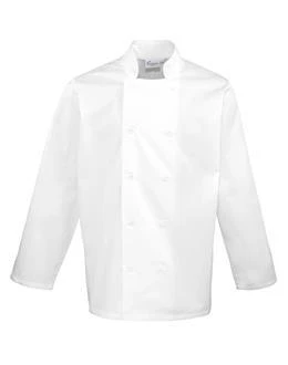A long sleeve chef's jacket with a ten button wrap over fastening. To withstand the demands of repeated washing, the buttons are long life resin. Styled with a mandarin collar.