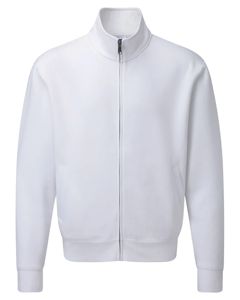 Weight: 280 gsm; Material: 80% cotton, ring-spun and combed, 20% polyester; 100% cotton face yarn (3-thread-construction); Herringbone neck tape, Self-fabric cadet collar, Slimmer shoulders and leaner arms with front facing shoulder seams, Self-fabric welt pockets, Cover seam armholes, cuffs and hem, Kissing (covered) YKK metal full zip (Antique Silver) for full cross body decoration, Straighter cut for a modern look, Outer layer provides the best surface for decoration; Certificates: STANDARD 100 by OEKO-TEX®; WRAP