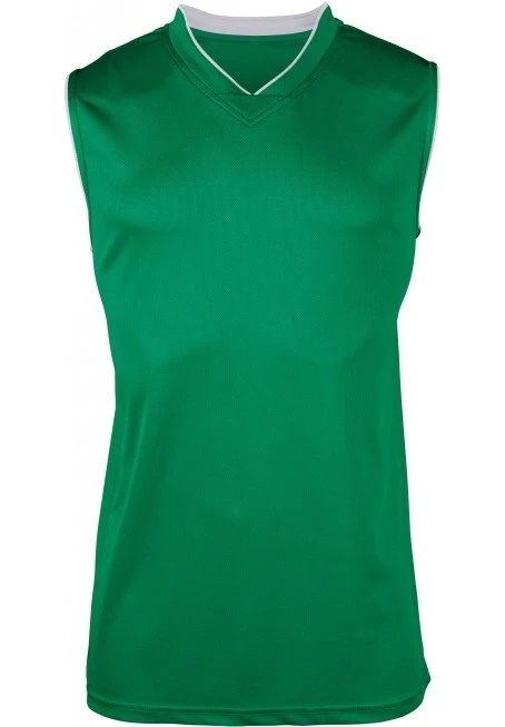 100% polyester. Quick drying fabric. V-neck. Double layer contrast self fabric at neckline and armholes. Twin needle finishing.