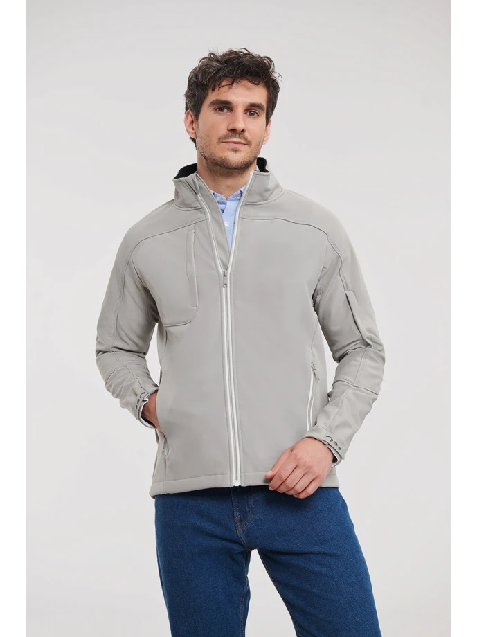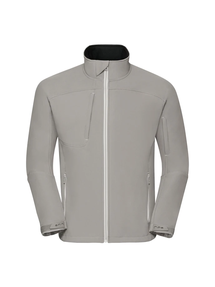 Weight: 320gsm; Material: 94% polyester, 6% elastane, Bionic-Finish® Eco (3 layer softshell with hydrophobic membrane); Fluorine and PFC free, Wind and waterproof (5000 mm), Breathable (5000 g/m² in 24h), Stand up collar, Hydroshell air panels at armpits, Zipped chest, arm and side pockets, Mesh media pocket inside, Adjustable sleeve hems, Contemporary shaped fit, Decoration access inside zip at lining, Suitable for screen print, transfer or embossing. Certificates: STANDARD 100 by OEKO-TEX®; WRAP