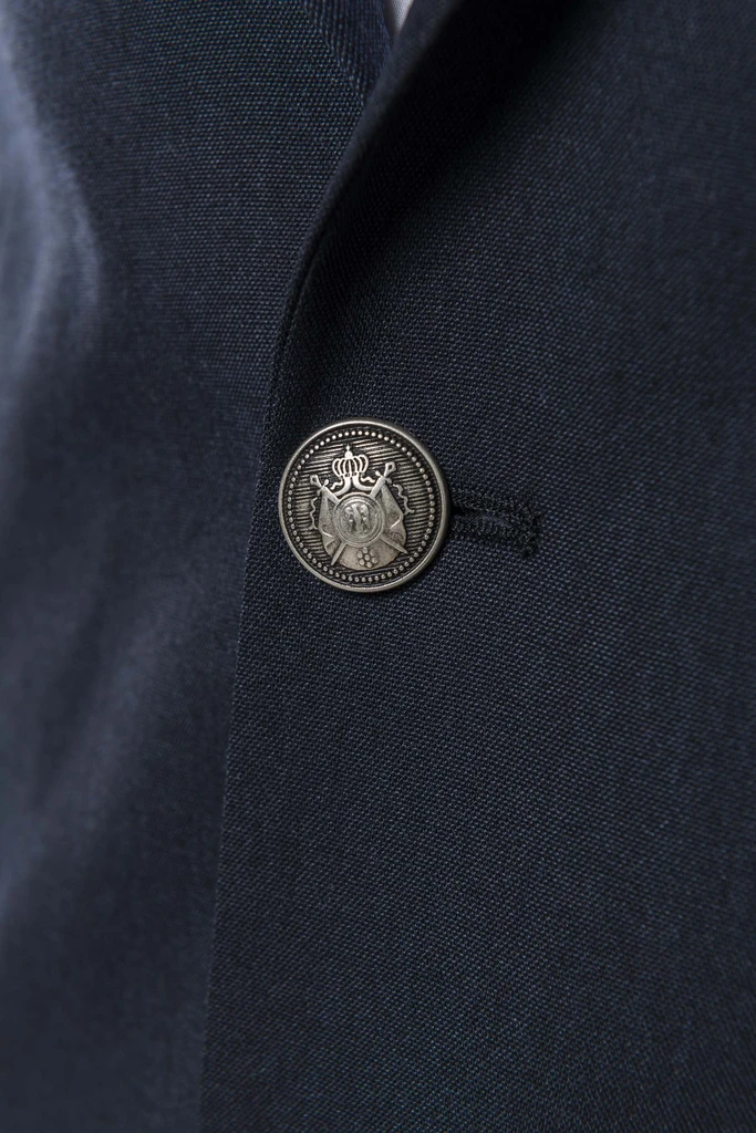 Jacket with 2 metal heraldry-motif buttons.