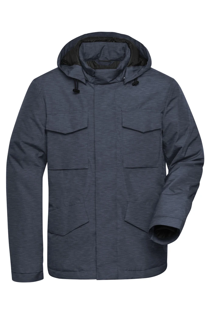 2 front pockets, 2 sewn-on breast pockets, 1 zipped inner pocket