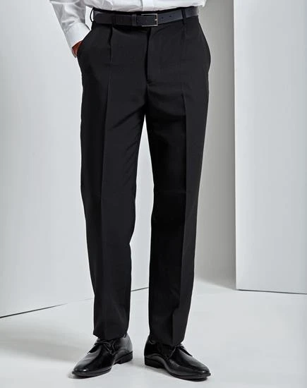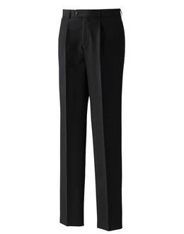 Men’s trousers with a single pleated front with two front swing pockets and a rear jetted pocket. These trousers have a zip fly fastening with a hook 'n' bar fastening at the waist as well as loops to support a belt. Available in two leg lengths.