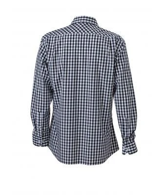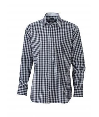 Fashionable checked shirt with uni-coloured insets on collar and cuff