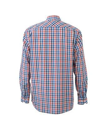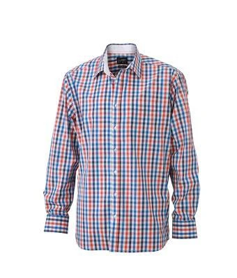 Fashionable checked shirt with uni-coloured insets on collar and cuff