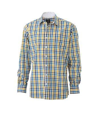 Fashionable checked shirt with uni-coloured insets on collar and cuff