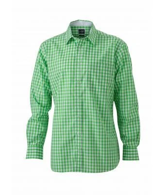 Fashionable checked shirt with uni-coloured insets on collar and cuff
