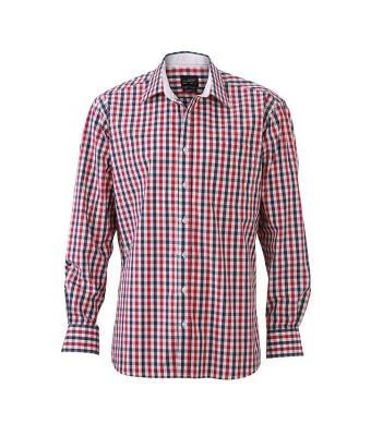 Fashionable checked shirt with uni-coloured insets on collar and cuff