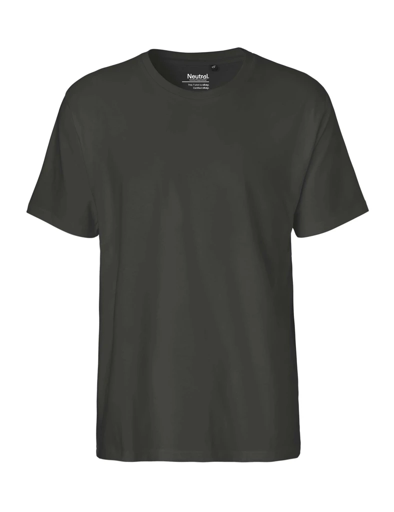 Material: 100% Organic Fairtrade Cotton, Single Jersey Knit; Weight: 185gsm; Classic fitted regular short sleeves. Crew neck, elastane rib knitted neckband. Neck tape, ringspun combed cotton. Certificates: OEKO-TEX® STANDARD 100, 100% CERTIFIED ORGANIC COTTON, FAIR WEAR, EU ECOLABEL, SA8000, NEUTRAL® RESPONSIBILITY