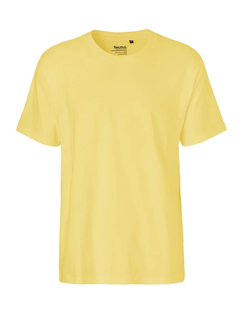 Material: 100% Organic Fairtrade Cotton, Single Jersey Knit; Weight: 185gsm; Classic fitted regular short sleeves. Crew neck, elastane rib knitted neckband. Neck tape, ringspun combed cotton. Certificates: OEKO-TEX® STANDARD 100, 100% CERTIFIED ORGANIC COTTON, FAIR WEAR, EU ECOLABEL, SA8000, NEUTRAL® RESPONSIBILITY