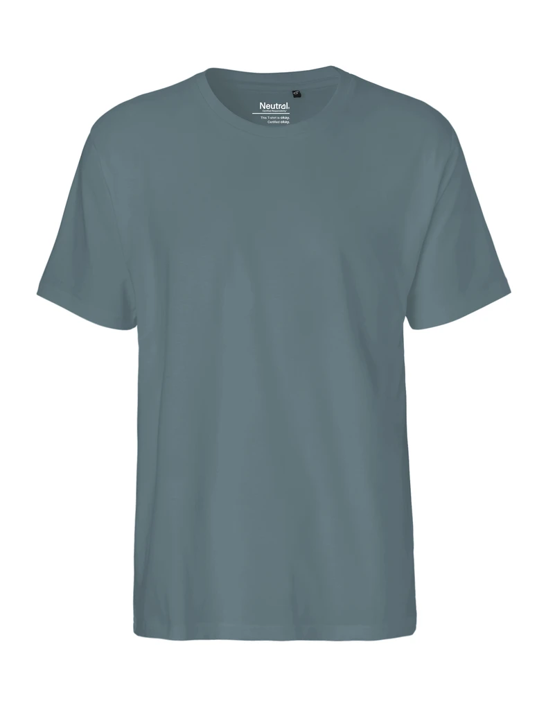 Material: 100% Organic Fairtrade Cotton, Single Jersey Knit; Weight: 185gsm; Classic fitted regular short sleeves. Crew neck, elastane rib knitted neckband. Neck tape, ringspun combed cotton. Certificates: OEKO-TEX® STANDARD 100, 100% CERTIFIED ORGANIC COTTON, FAIR WEAR, EU ECOLABEL, SA8000, NEUTRAL® RESPONSIBILITY