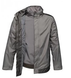 Waterproof and breathable Isotex 10,000 coated fabric with taped seams conforms to EN343 class 3:2; Inner: warm backed woven stretch; Softshell fabric, concealed hood with adjusters, waterproof chest zip pocket and a concealed zip in lining for embroidery access, Softshell inner with 2 lower zipped, pockets