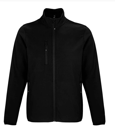 Material: Softshell 270 - 94% recycled polyester - 6%elastane - 3 layers; Polar fleece lining: 100% polyester; Recycled Polyester / Elastane - 3 layers, Fleece inside: 100% Polyester, sustainable fabric, softshell 270, comfortable cut, zipped opening, 2 side pockets and 1 zipped chest pocket, contrasting zippers, elastic bias at the cuffs and hem, tear-Away label; Certificates: Global Recycled Standard (GRS), STANDARD 100 by OEKO-TEX®