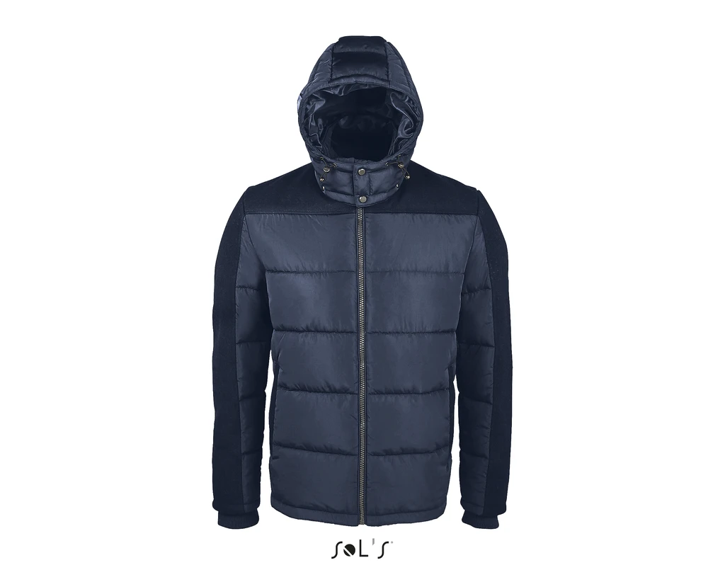 QUALITY: 100% polyester, PU coating; Shoulder yoke: 57% wool, 34% polyester, 5% acrylic, 4% nylon; Lining: Taffeta 210T - 100% polyester; Padding: 100% polyester; 200 gsm; Zip opening, Removable hood, Ribbed inner cuffs, 2 front zip pockets, 1 inside zip pocket, Drawcord at hem, Inside patch for customisation