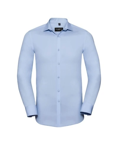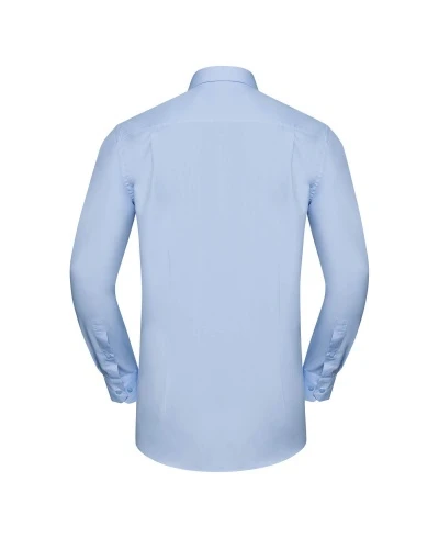 Weight: 130gsm (White: 125gsm); Material: 75% cotton, 25% elastomultiester (LYCRA® T400® fibre) Poplin; Excellent shape retention for a lasting fit, Durable fabric with moisture management for cool comfort, Short leaf, semi cutaway collar, Narrow placket, Square edged cuffs (cuff link option), Darts at back, Fitted fit; Certificates: STANDARD 100 by OEKO-TEX®; WRAP