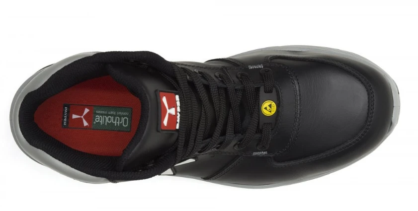Men's medium safety shoe, upper in water-repellent and breathable leather, inner lining (throughout the internal surface), breathable and resistant to abrasion, 8 + 8 metal-free eyelets, pampas grain heel guard with reflective insert, die-cast aluminium tip, Ortholite X40 016 ESD removable arch support, certified anti-puncture reinforced fabric insole, anti-torsion shank, horseshoe-shaped under-toe, ultra-light ESD polyurethane mid-sole, high tenacity and balanced density ESD polyether MASTER BALANCE cushioning, XTRAIL GRIP outsole in ESD TPU with heel and tip guard
