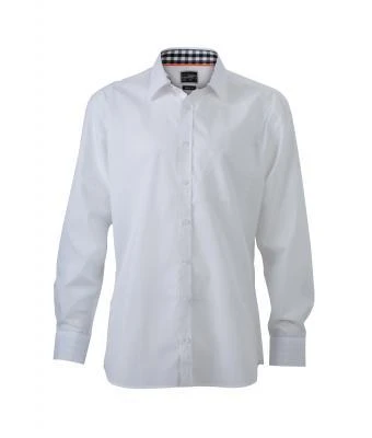Fashionable checked shirt with uni-coloured insets on collar and cuff
