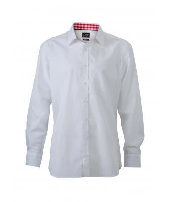 Fashionable checked shirt with uni-coloured insets on collar and cuff