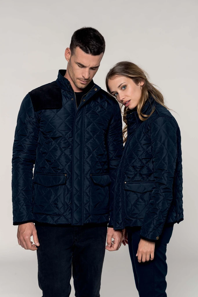 Outer: 100 % polyester pongee. Inner: 100 % polyester taffeta. Zip fastening concealed beneath press stud placket. 2 double front pockets with press stud flaps. 1 inner pocket. Press stud shoulder yoke. Corduroy trim on cuffs, hem, elbows, inside neck and reverse side of pocket flap. 2 slits with press studs at back. Press studs on cuffs.