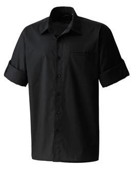 This shirt is very popular with bartenders who need to have their sleeves rolled up and fastened securely in place, ready to serve drinks. Initially a long sleeve shirt, the sleeve can be rolled up and fastened with a tab and button on the upper arm.