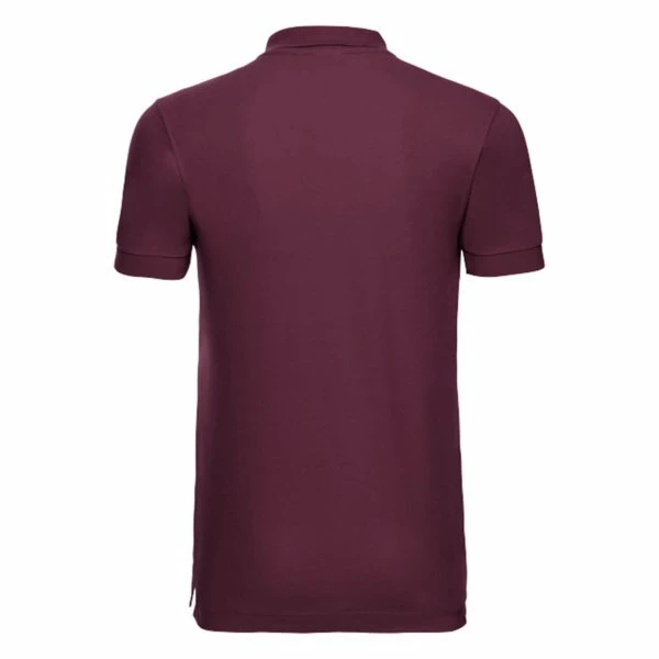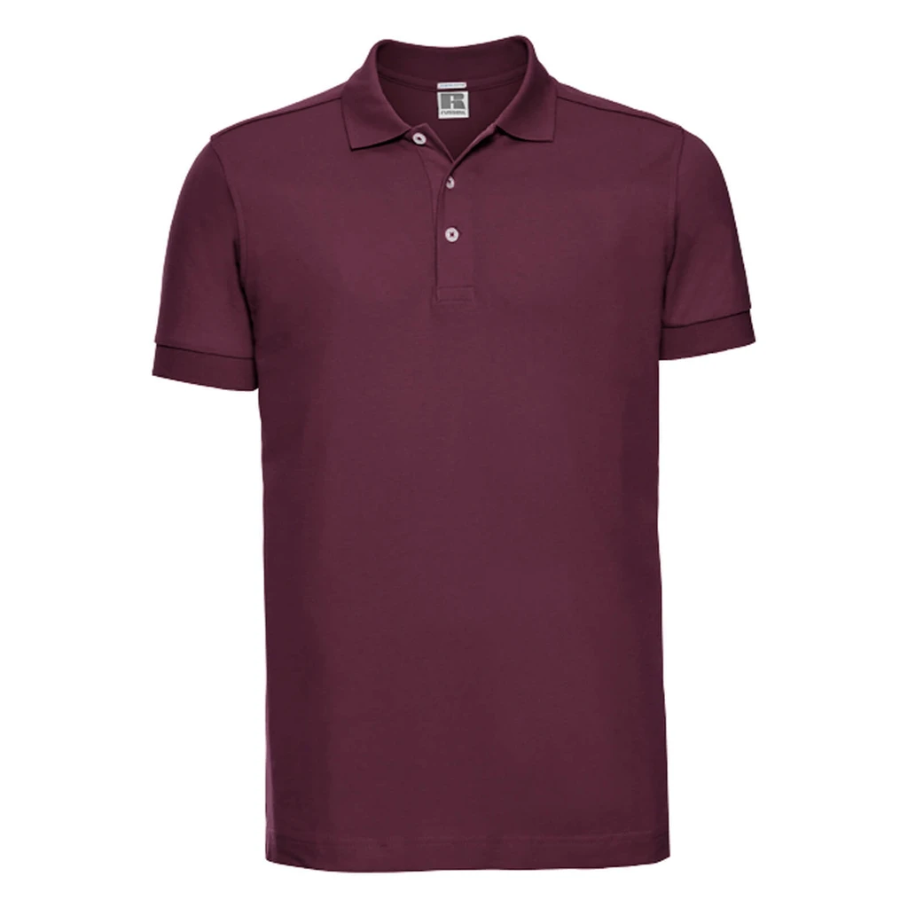 Weight: 210gsm (White: 205gsm); Material: 95% Combed Ringspun Cotton; 5% LYCRA®; *Light Oxford: 88% Combed Ringspun Cotton, 7% Viscose, 5% LYCRA®; Long slim fit, fine honeycomb pique structure, slim leaf collar, contrast buttons, ribbed cuffs, strip of self-colour fabric along shoulder seam, shorter side vents with herringbone tape, soft handfeel, Russell’s best looking polo ever will turn heads; Certificates: STANDARD 100 by OEKO-TEX®; WRAP