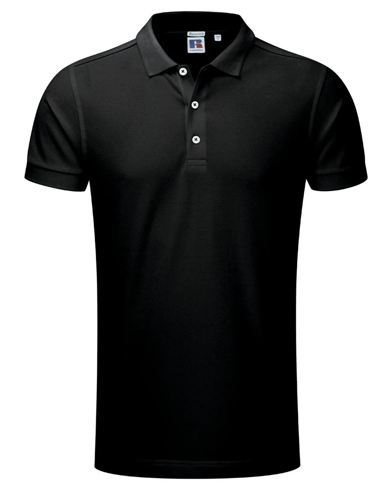 Weight: 210gsm (White: 205gsm); Material: 95% Combed Ringspun Cotton; 5% LYCRA®; *Light Oxford: 88% Combed Ringspun Cotton, 7% Viscose, 5% LYCRA®; Long slim fit, fine honeycomb pique structure, slim leaf collar, contrast buttons, ribbed cuffs, strip of self-colour fabric along shoulder seam, shorter side vents with herringbone tape, soft handfeel, Russell’s best looking polo ever will turn heads; Certificates: STANDARD 100 by OEKO-TEX®; WRAP