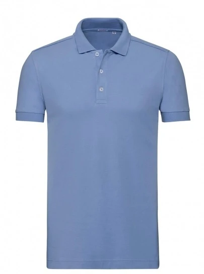 Weight: 210gsm (White: 205gsm); Material: 95% Combed Ringspun Cotton; 5% LYCRA®; *Light Oxford: 88% Combed Ringspun Cotton, 7% Viscose, 5% LYCRA®; Long slim fit, fine honeycomb pique structure, slim leaf collar, contrast buttons, ribbed cuffs, strip of self-colour fabric along shoulder seam, shorter side vents with herringbone tape, soft handfeel, Russell’s best looking polo ever will turn heads; Certificates: STANDARD 100 by OEKO-TEX®; WRAP