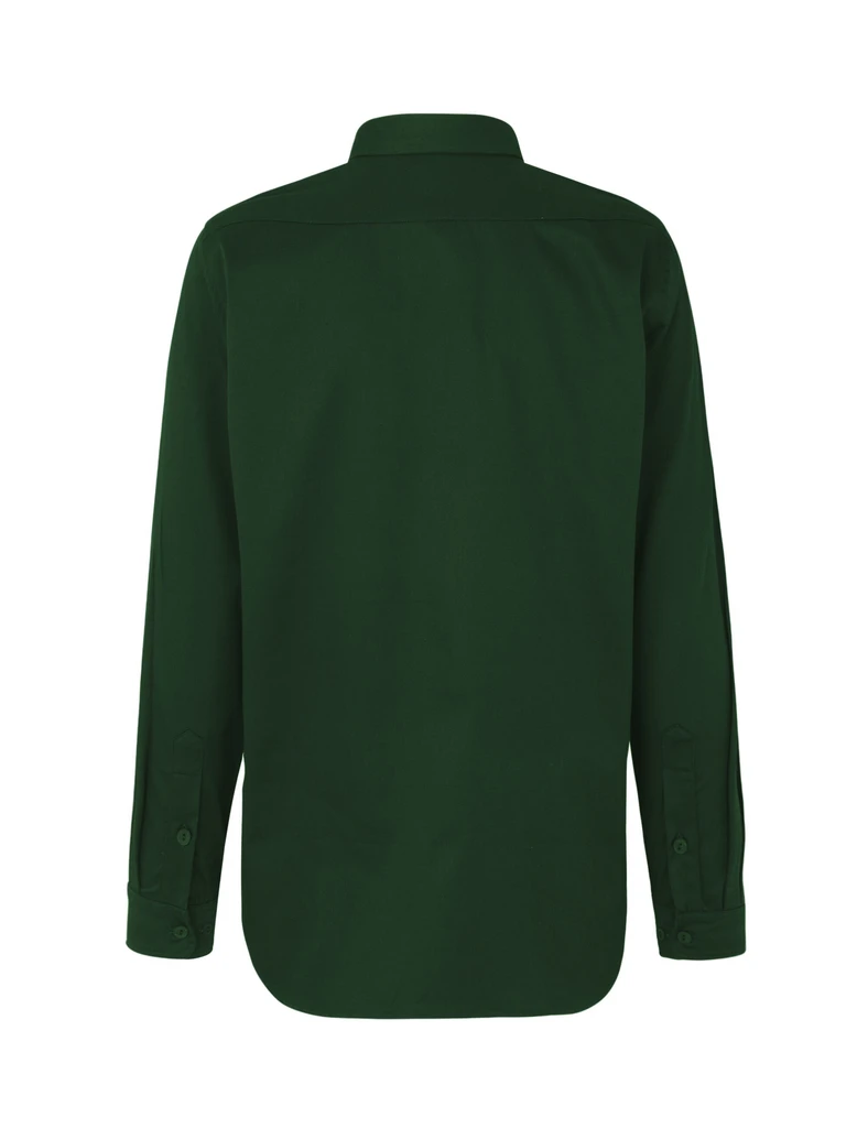 Material: 80% Organic Fairtrade Cotton. 20% Recycled Polyester, twill weave; Weight: 210gsm; Classic fit, Pointed collar, Back yoke. Placket & sleeve cuffs w. cotton buttons. Durable twill weaved cotton/polyester PET blend; Certificates: OEKO-TEX® STANDARD 100,NEUTRAL® WORKWEAR, FAIR WEAR, EU ECOLABEL, SA8000, NEUTRAL® RESPONSIBILITY