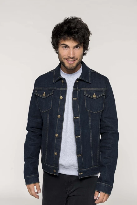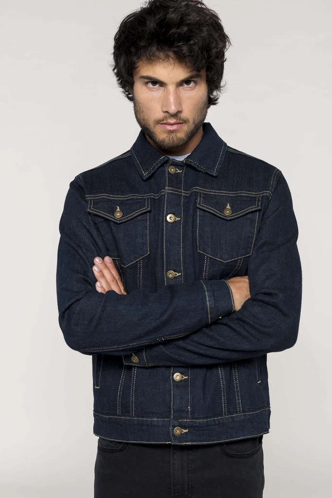 99 % cotton denim/1 % elastane. 11.50 oz. Metal button fastening. 2 patch chest pockets with buttoned flap and 2 front pockets with piping. 2 inner pockets. Contrasting seams. Buttoned cuffs.