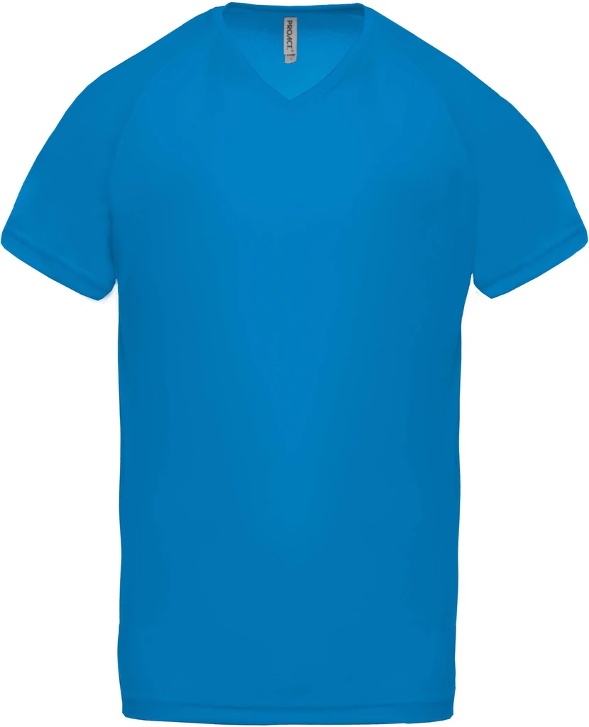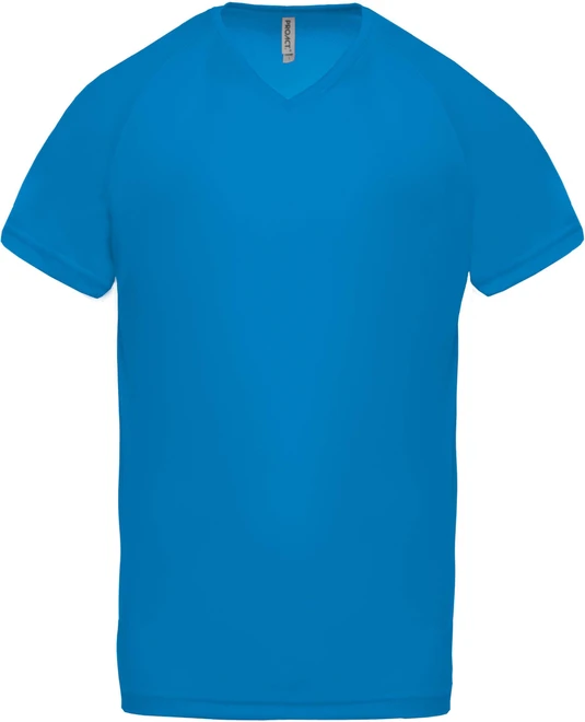 100 % polyester. Quick-drying fabric. Taped V-neck. Raglan sleeves with cover stitch. Twin needle finishing on cuffs and hem.