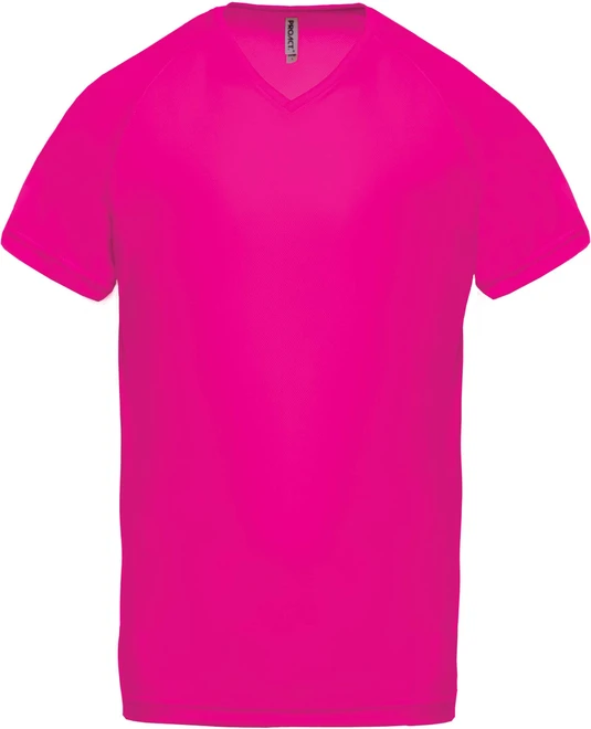 100 % polyester. Quick-drying fabric. Taped V-neck. Raglan sleeves with cover stitch. Twin needle finishing on cuffs and hem.