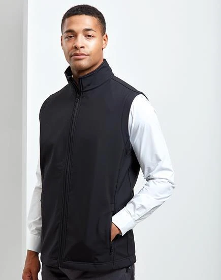 PR814-blackA men's two layer softshell Gilet carrying Premier's Windchecker® trademark for wind and water resistance through the fabric. Made with 100% recycled polyester, this two layer zip-through softshell bodywarmer features handy zipped side pockets and an elasticated drawcord hem for fit. A great versatile outer layer for casual and corporate dressing for men.