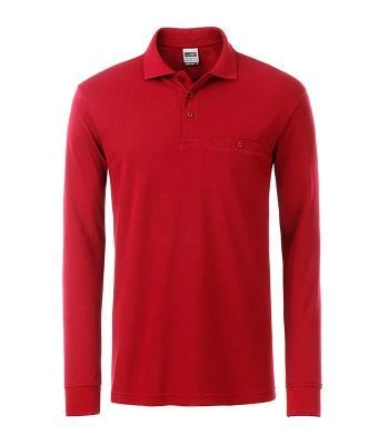 Durable, easy care long-sleeved poloshirt with breast pocket