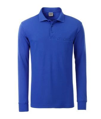 Durable, easy care long-sleeved poloshirt with breast pocket