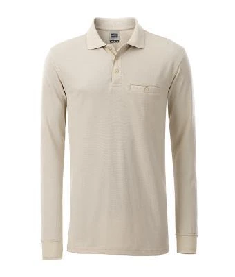 Durable, easy care long-sleeved poloshirt with breast pocket